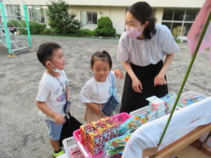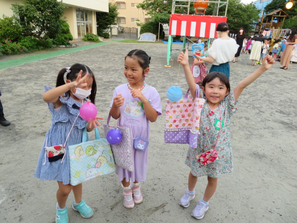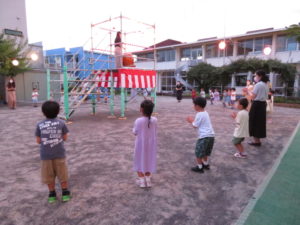 楽しみに待っていた年長児が夕方幼稚園に集まり、夕涼み会がスタート。