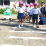 交通指導員さんからの交通安全についてのお話も、子どもたちはしっかり聞くことができ、指導員さんから褒めていただきました。