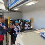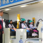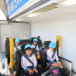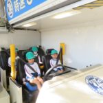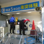 シートベルトをすることの大切さを話していただいた後に、時速5キロの衝突体験をしました。初めて体験した子どもたちは、みんなドキドキ!