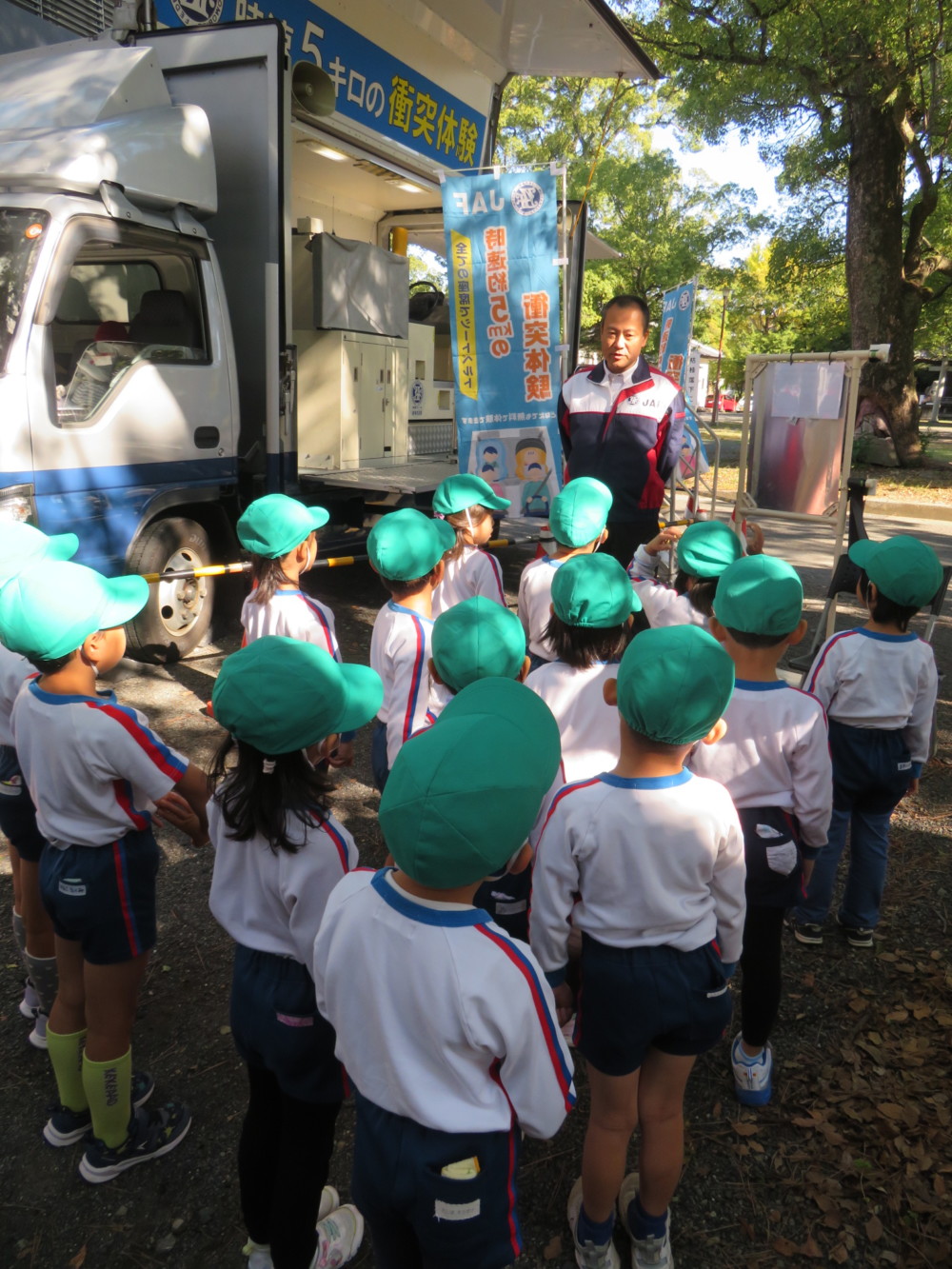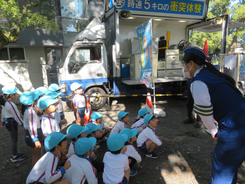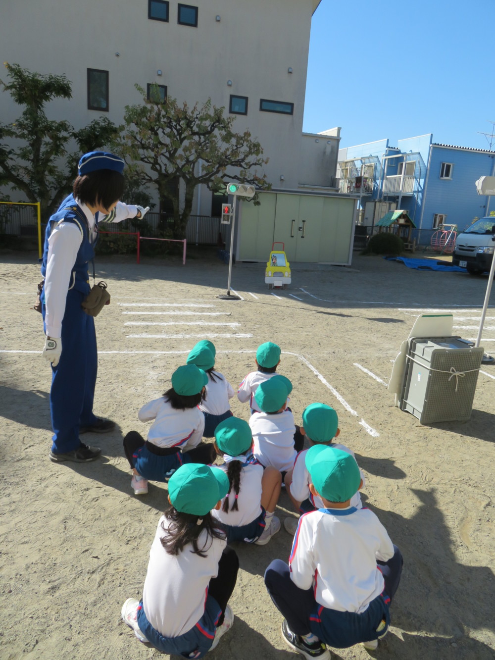 交通指導員さんからの交通安全についてのお話も、子どもたちはしっかり聞くことができ、指導員さんから褒めていただきました。
