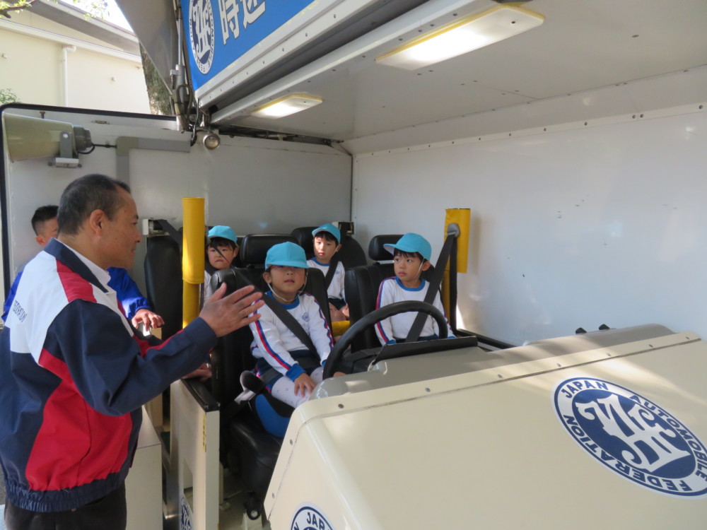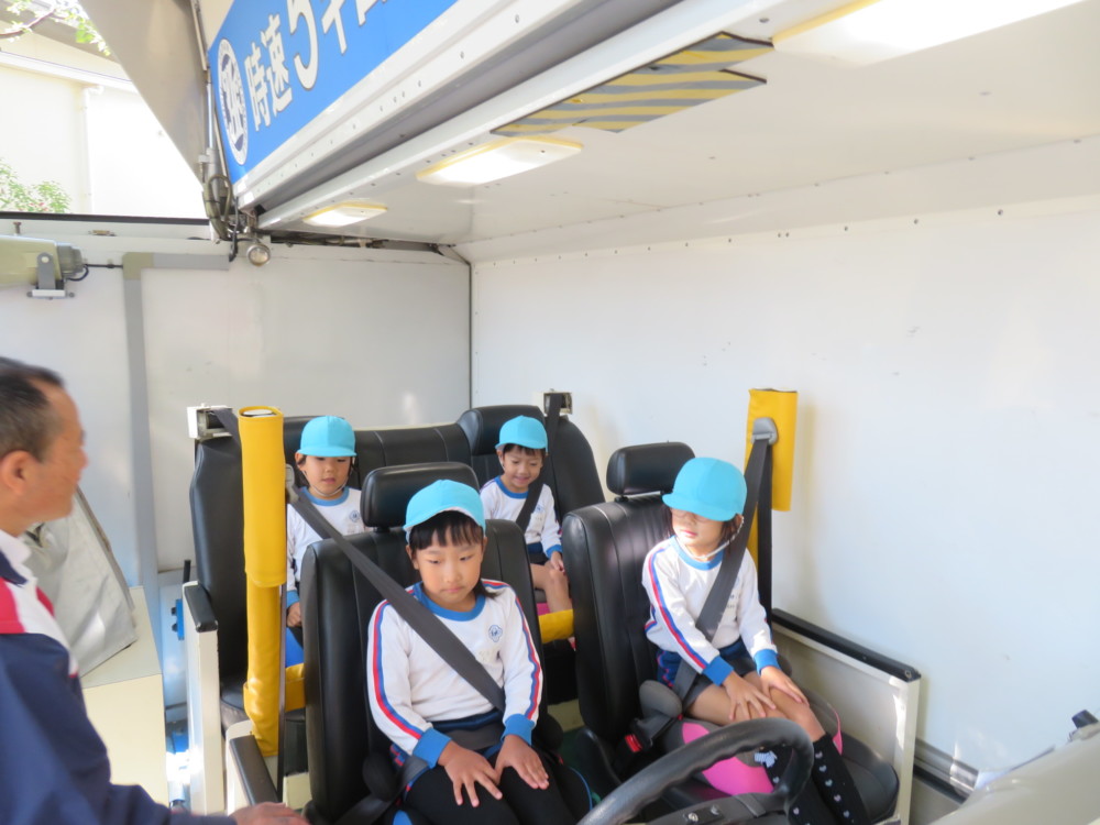 年長児はJAFさんのご協力でシートベルトコンビンサー体験をしました。